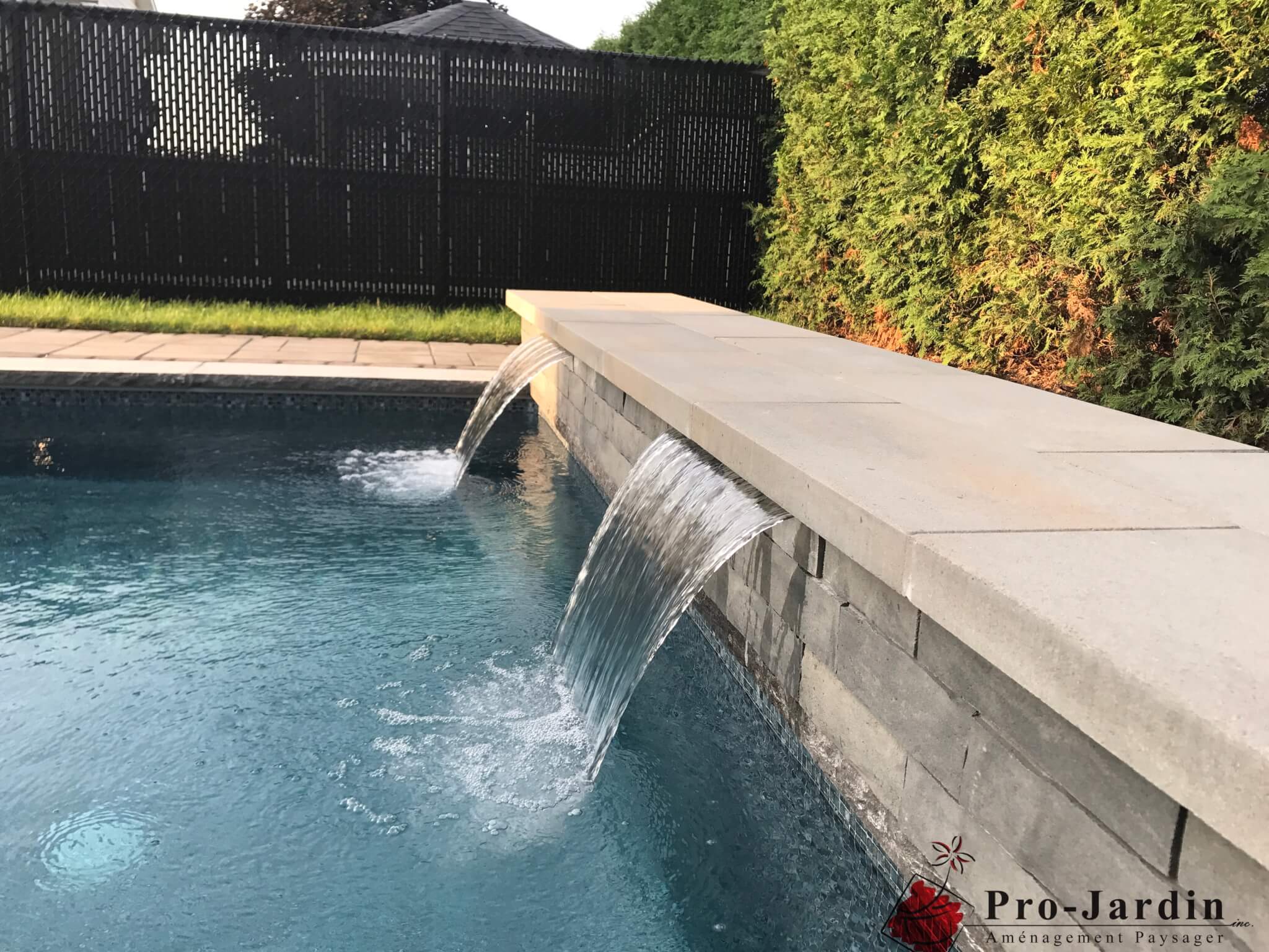 piscine creusé avec lames d’eau aménagement paysager pro-jardin
