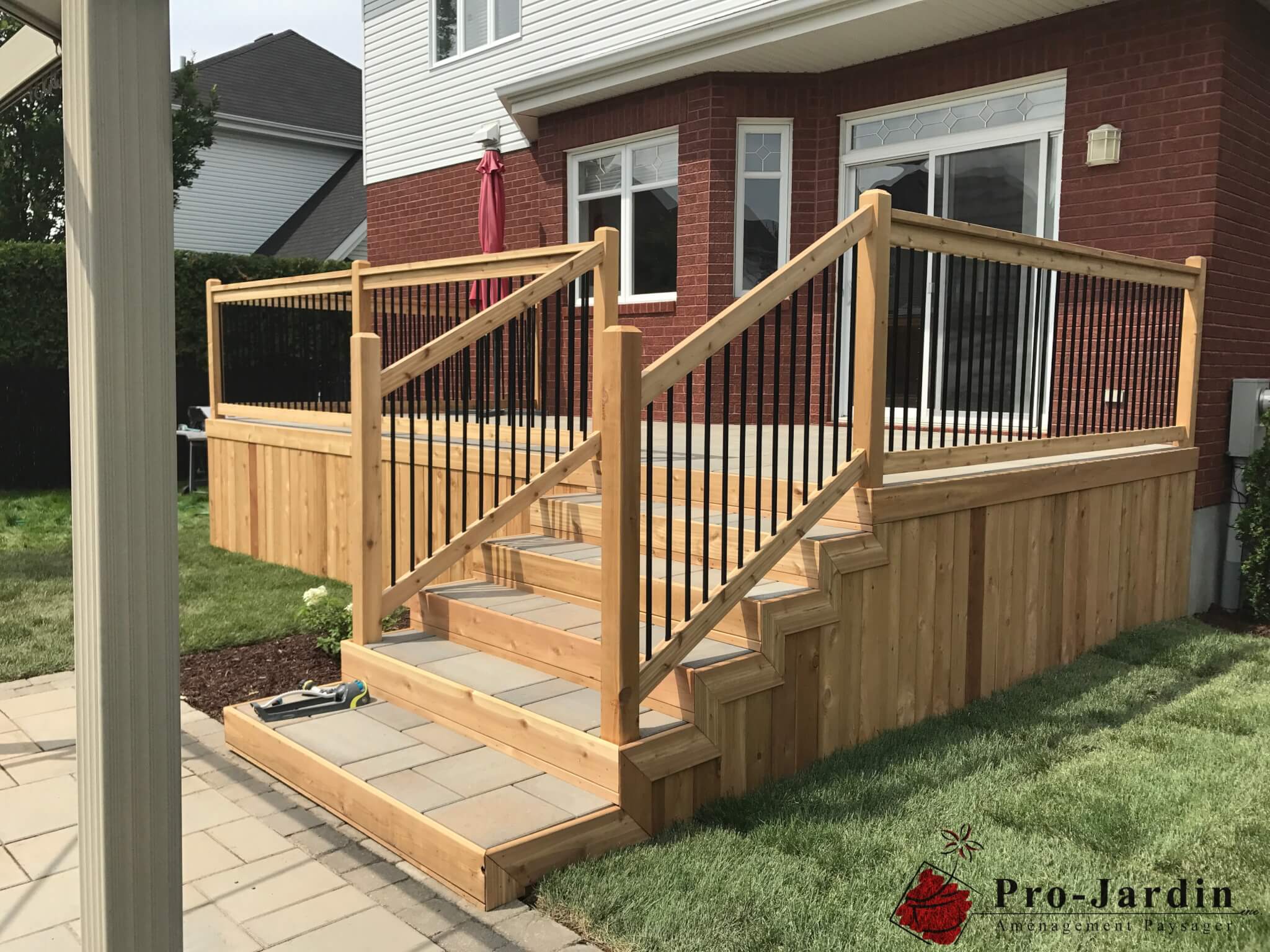pro-jardin paysagiste patio extérieur en bois et pavé-uni